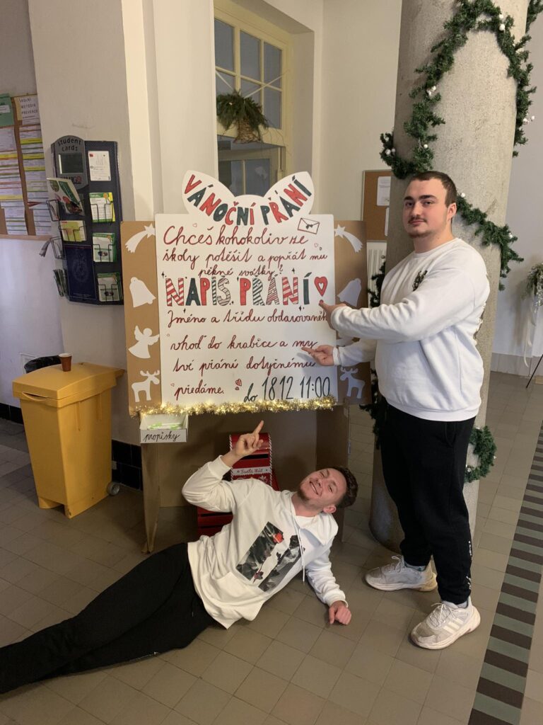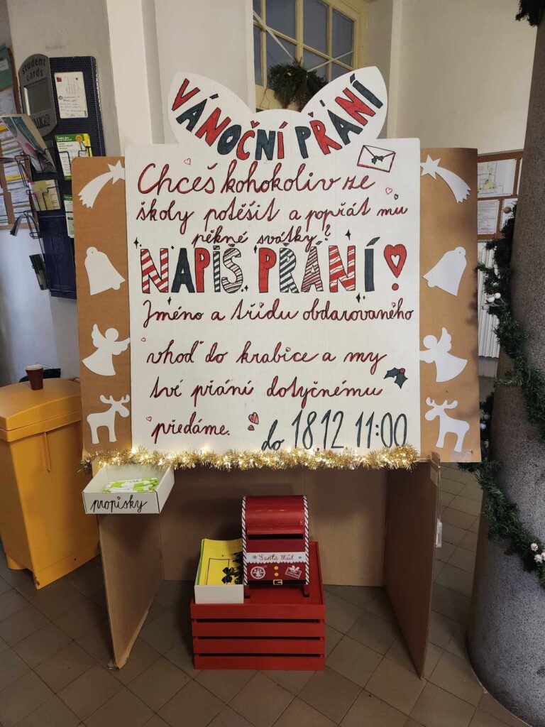 Chceš kohokoliv ze školy potěšit a popřát mu pěkné svátky? Napiš přání do 18. prosince! Schránku najdeš u automatu.