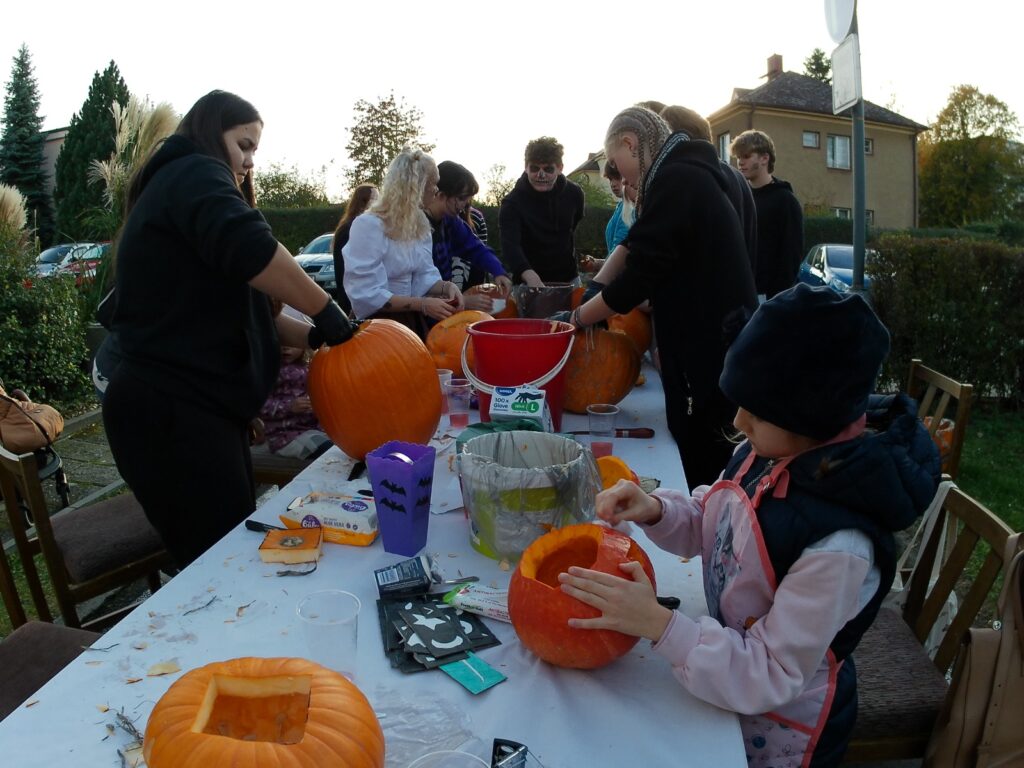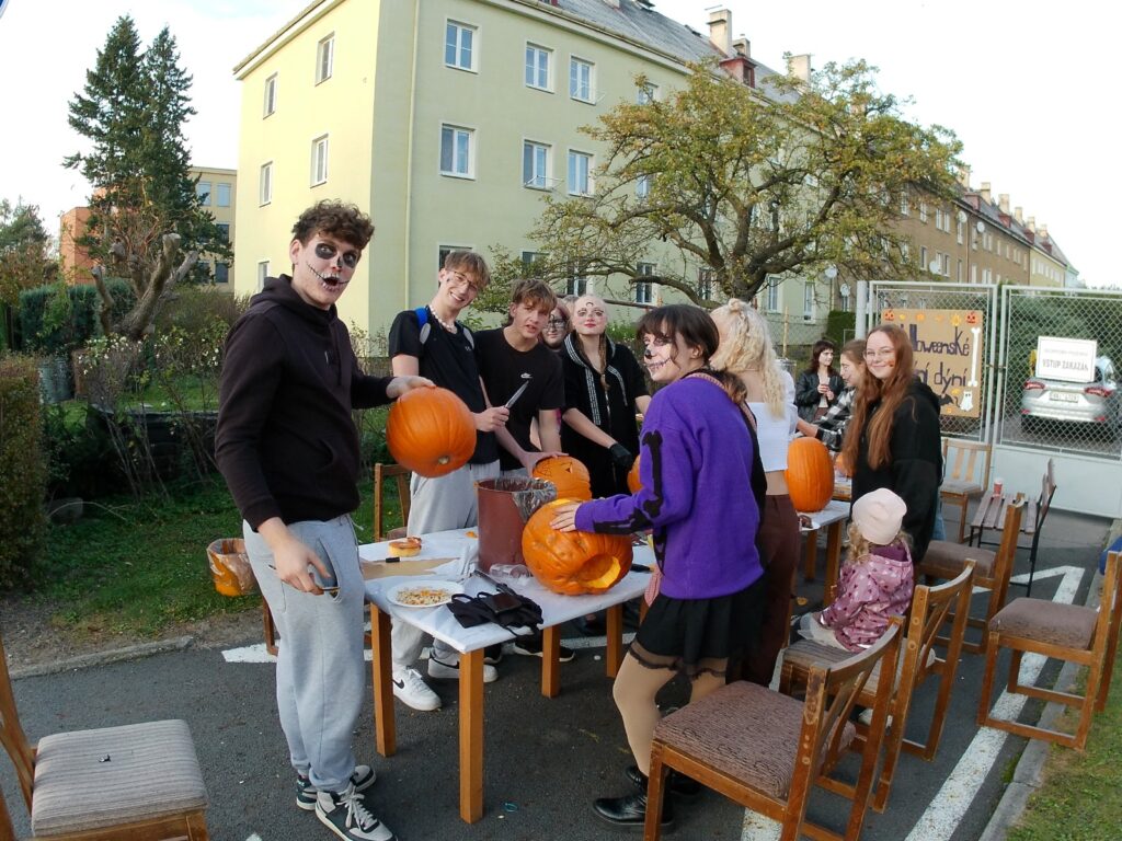 Ve středu 23.10.2024 proběhlo na domově mládeže Halloweenské dlabání dýní. Tato akce byla i pro veřejnost.Dětem, rodičů i žákům se dlabání dýní moc líbilo. Podával se teplý čaj i drobné občerstvení. Děkujeme školnímu statku, že nám poskytl krásné dýně. Těšíme se,že tuto akci příští rok zopakujeme.