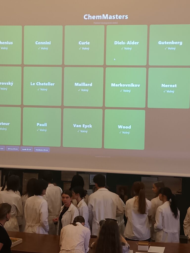 Žáci třídy 3.C se dne 17.4. zúčastnili chemické únikové hry Chemmasters, kterou pořádala Vysoká škola chemicko-technologická v Praze. Tato akce nabídla studentům jedinečnou příležitost vyzkoušet si své znalosti chemie v netradičním a zábavném prostředí.