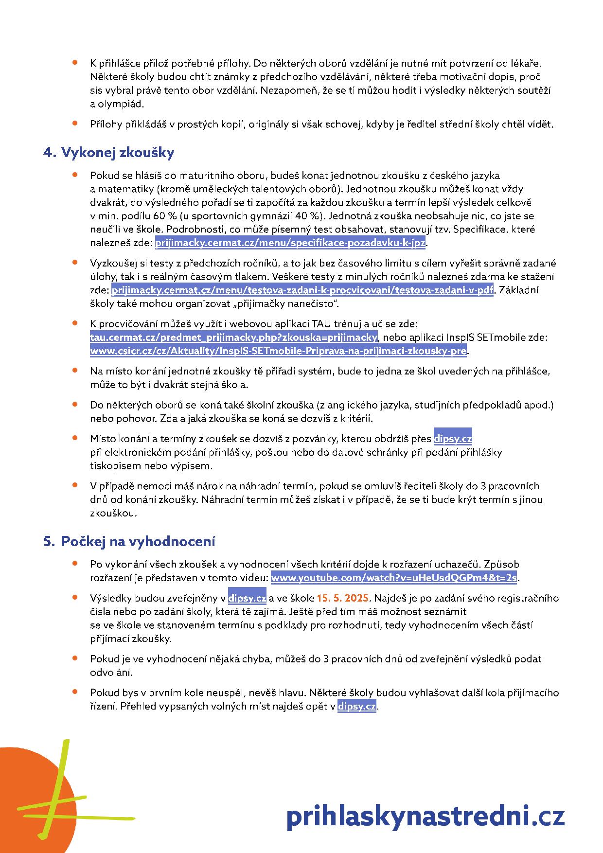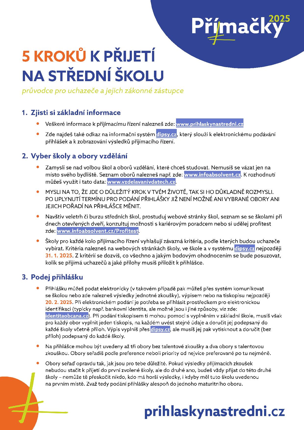 Podrobné informace k přijímacímu řízení naleznete na webu prihlaskynastredni.cz.