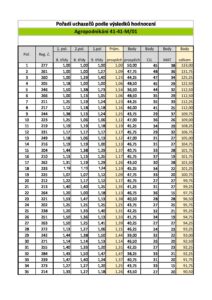 Pořadí uchazečů podle výsledků hodnocení – Agropodnikání