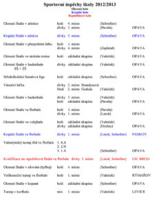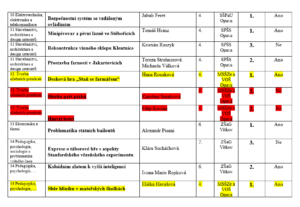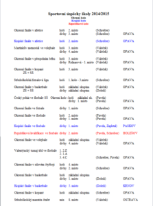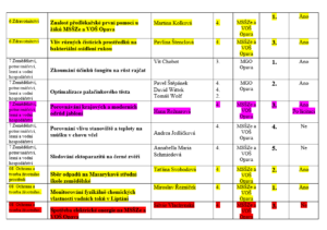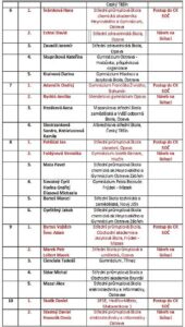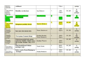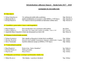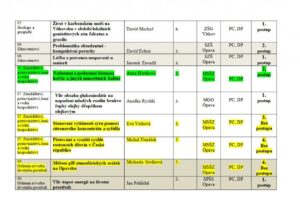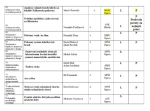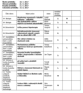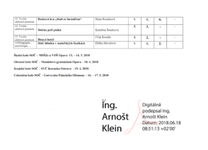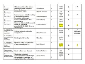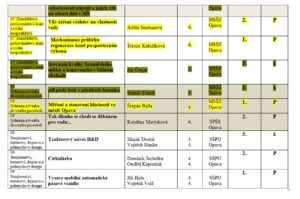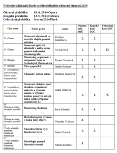 Přílohou je tabulka se jmény reprezentantů naší školy, názvy prací a umístěními v jednotlivých kategoriích a tabulka s výsledky okresního kola středoškolské činnosti celkem.