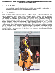 – 2. místo v kategorii 04 „Biologie“ licitace o postup do celostátního kola - Marie Graclíková s prací „Měření vlastností různých odrůd domácích moštovaných jablek“