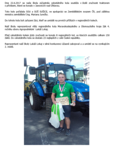 Úspěch Lukáše Lokaje v celostátním kole soutěže v „Jízdě zručnosti traktorem 2017“