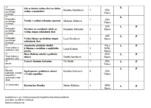 – 3. místo v kategorii 14 „Pedagogika, psychologie, sociologie a problematika volného času“Výsledková listina ke stažení – zde.